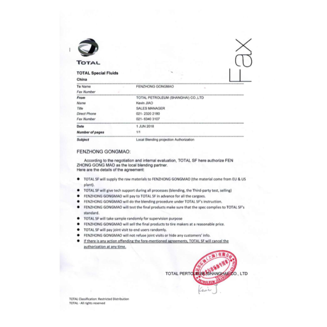 與法國(guó)道達(dá)爾中國(guó)有限公司(Total)合作開(kāi)發(fā)了環(huán)保重質(zhì)環(huán)烷油FZ-500、FZ-600、FZ-700及環(huán)保橡膠油(TDAE)系列產(chǎn)品,正式成為該公司合作企業(yè)。